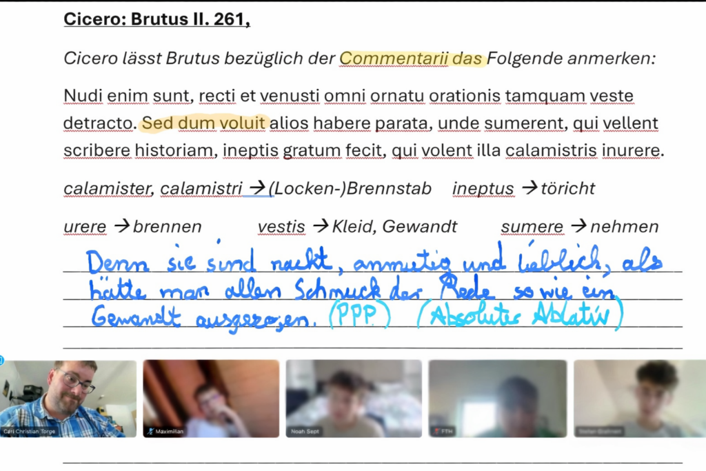 Danach Übersetzungsklausuren von Cicero, Sallust, Plinus, Seneca